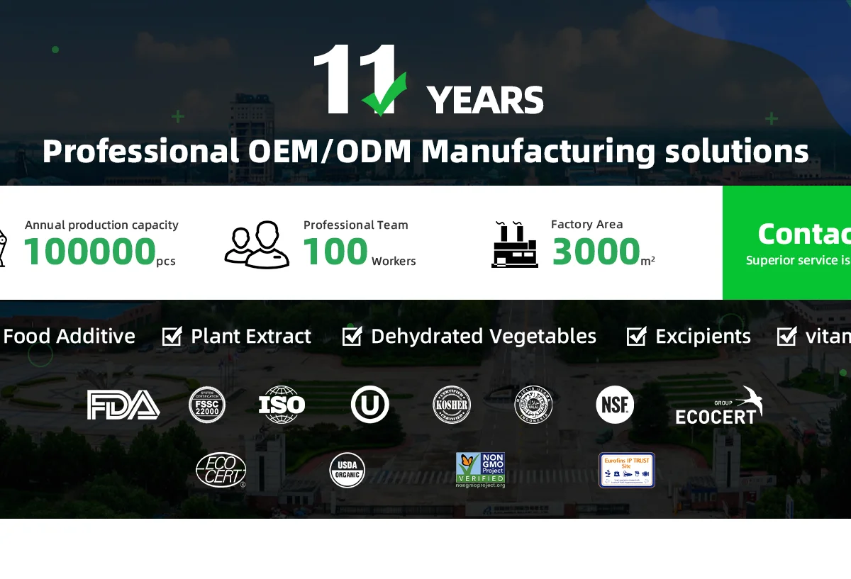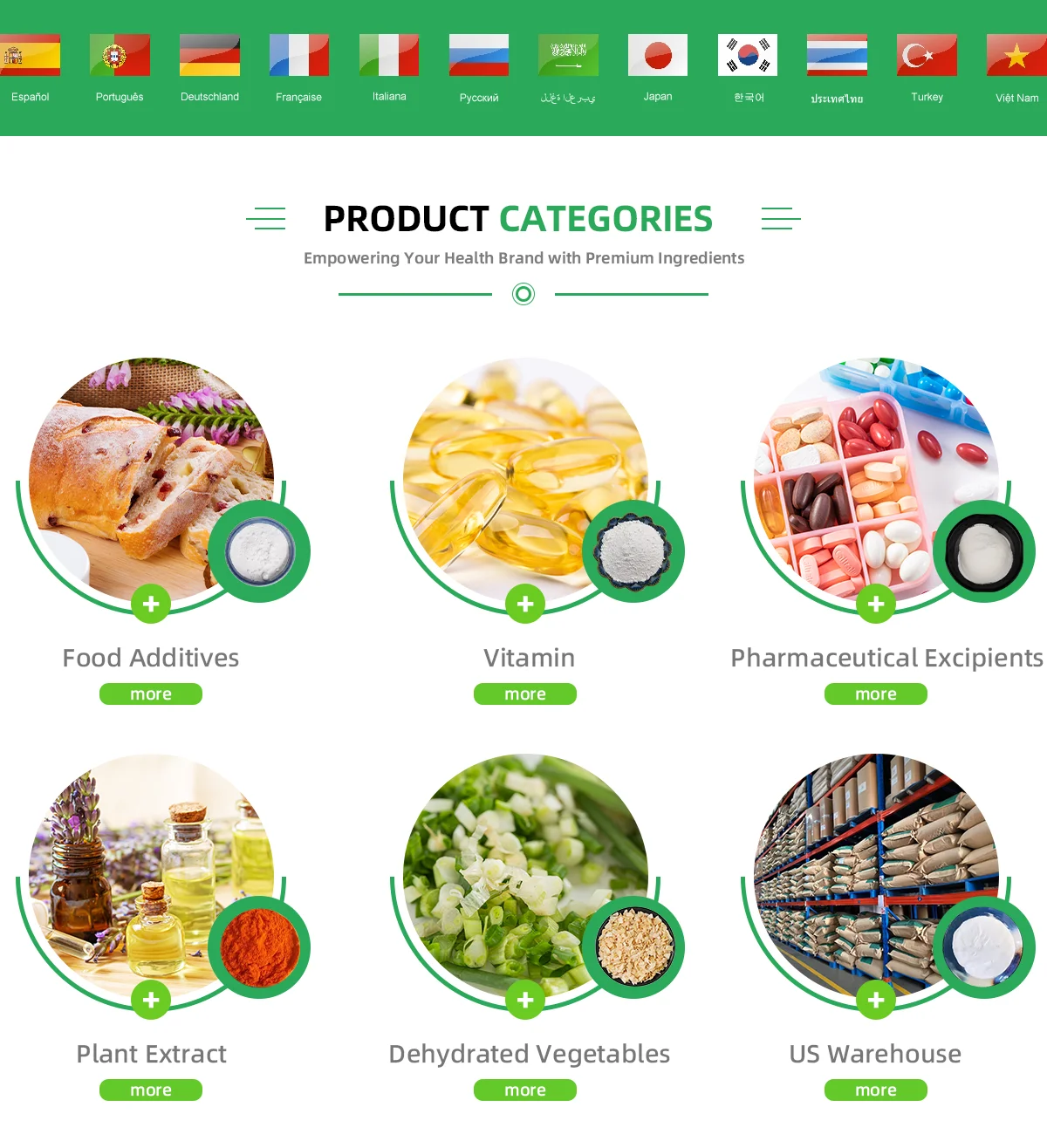 ผลิตภัณฑ์หลัก:สารเพิ่มปริมาณ, วัตถุเจือปนอาหาร, สารเติมแต่งผลิตภัณฑ์สุขภาพ, สารสกัดจากพืช, ผักขาดน้ำ